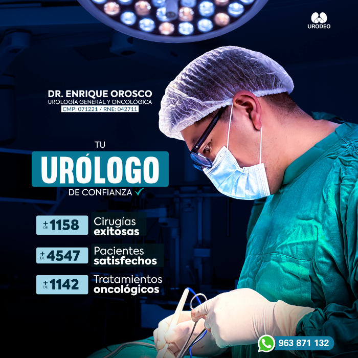 Bienvenidos a mi página web, soy el Dr. Enrique Orosco, tu especialista en Urología General y Oncológica. Profesional médico especialista de la Universidad Peruana Cayetano Heredia (UPCH). Siempre a la vanguardia con capacitaciones de cursos, especializaciones y diplomados en distintos países de Latinoamérica y Europa. Poseo una sólida trayectoria como médico especialista, con un gran compromiso a mis pacientes y su bienestar. Mi calidad de servicio está respaldada con más de 8 años de experiencia en el campo de la urología general y oncológica. Tenemos gran capacidad para el diagnóstico, tratamiento y seguimiento de los problemas que afectan la salud de las personas.